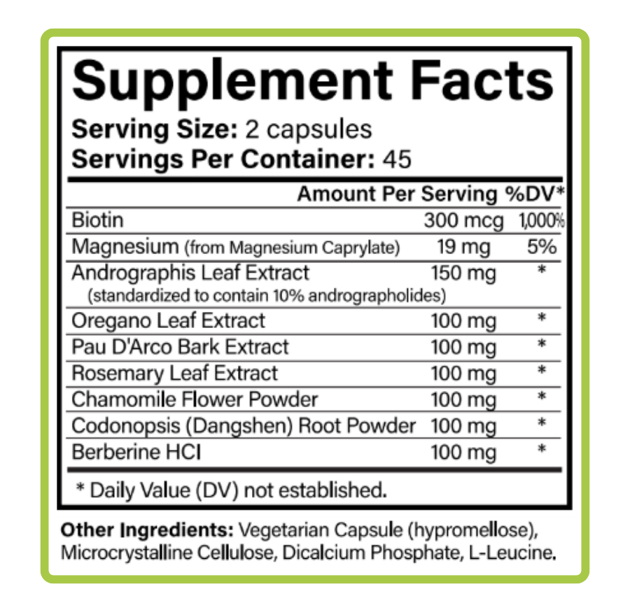 Candeva is formulated with a rich blend of antimicrobial herbs to help restore a balanced gut ecosystem. By targeting unwanted microbes, including bacteria and fungi, Candeva supports a cleaner, more harmonious gut environment.